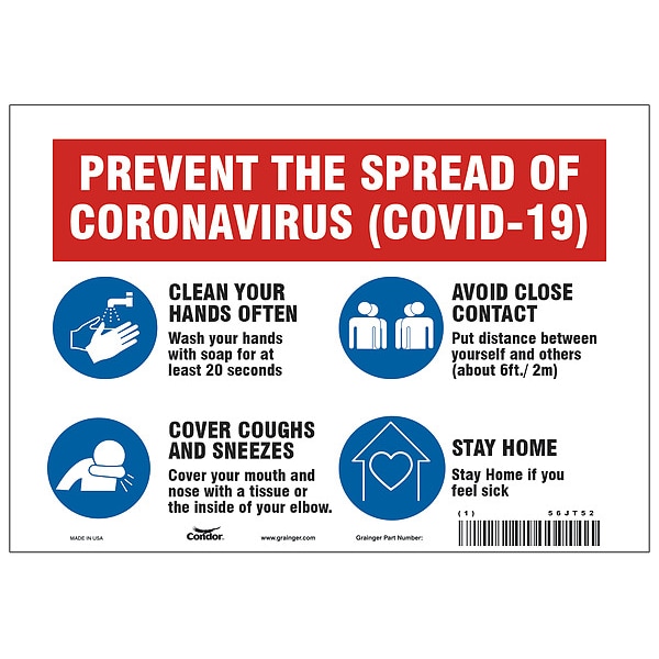 Prevent The Spread Of Coronavirus Sign, Sign Subject Matter Coronavirus Prevention, Height 7 in, Width 10 in, Sign Material Polystyrene, Sign Mounting Style With Mounting Holes, Header Prevent The Spread Of Coronavirus (COVID-19)