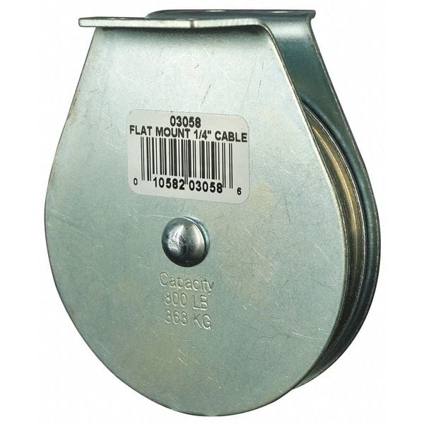 Pulley Block, Product Type Pulley Block, Pulley Type Mounted, Mount Type Side Mount, Upright Mount, Working Load Limit 800 lb, Operation Pulling, Attachment Type Bolt-On, Compatible Rope Diameter 1/4 in, Sheave Inside Diameter 2 1/2 in, Sheave Depth 7/16 in, Sheave Outside Diameter 3 in, Compatible Rope Type Fibrous Rope, Wire Rope, Bearing Type Sleeve, Attachment Inside Diameter Not Applicable, Housing Material Carbon Steel, Mounting Hole Diameter 3/16 in, Number of Grooves 1