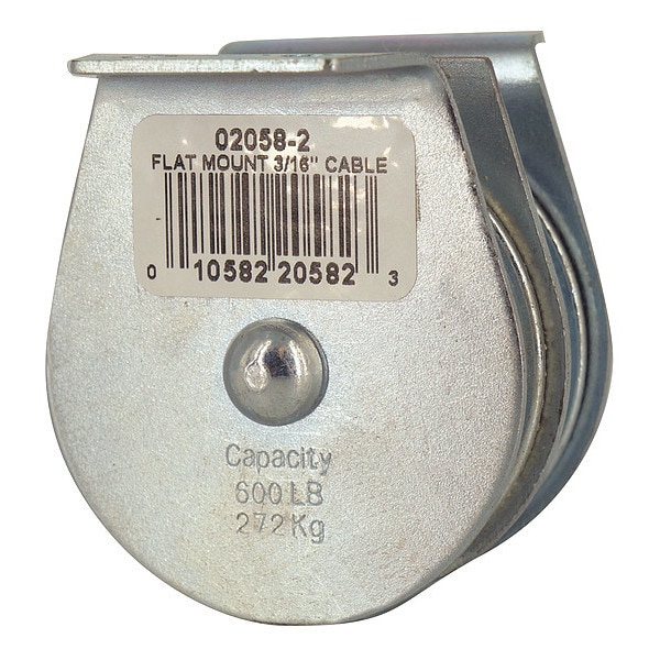 Pulley Block, Product Type Pulley Block, Pulley Type Mounted, Mount Type Upright Mount, Working Load Limit 600 lb, Operation Pulling, Attachment Type Bolt-On, Compatible Rope Diameter 3/16 in, Sheave Inside Diameter 1 1/2 in, Sheave Depth 7/16 in, Sheave Outside Diameter 2 in, Compatible Rope Type Wire Rope, Bearing Type Sleeve, Attachment Inside Diameter Not Applicable, Housing Material Carbon Steel, Mounting Hole Diameter 3/16 in, Number of Grooves 2, Sheave Material Steel