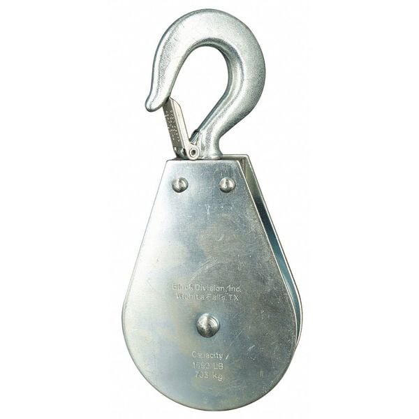 Pulley Block, Product Type Pulley Block, Pulley Type Swivel, Mount Type Upright Mount, Working Load Limit 1,550 lb, Operation Pulling, Attachment Type Swivel Hook, Compatible Rope Diameter 5/16 in, Sheave Inside Diameter 3 in, Sheave Depth 5/8 in, Sheave Outside Diameter 3 1/2 in, Compatible Rope Type Wire Rope, Bearing Type Sleeve, Attachment Inside Diameter 13/16 in, Housing Material Carbon Steel, Mounting Hole Diameter 13/16 in, Number of Grooves 1, Sheave Material Steel
