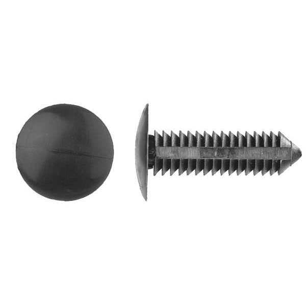 Nylon Retainers,Black,1 11/64 In. L,PK25, System of Measurement Inch, Shank Diameter 0.281 in, Overall Length 1 19/64 in, Shank Type Ribbed, Material Nylon, Head Type Dome, Head Height 0.125 in, Head Diameter 3/4 in, Color Black, Maximum Hole Diameter 0.281 in, Maximum Material Thickness 1 in, Product Type Push-In Rivet, Minimum Material Thickness 3/64 in, Manufacturer Location Globally Sourced, Body Length 1 11/64 in, Material Grade/Class Ungraded, Package Quantity 25