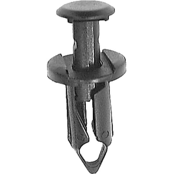 Push-In Rivet,Black,Dome,20mm L,PK25, System of Measurement Metric, Shank Diameter 0.25 in, Overall Length 1 in, Shank Type Keyhole, Material Nylon, Head Type Dome, Head Diameter 15 mm, Color Black, Maximum Hole Diameter 0.25 in, Product Type Push-In Rivet, Compatible Material Metal, Wood, Manufacturer Location Globally Sourced, Body Length 20 mm, Material Grade/Class Ungraded, Package Quantity 25