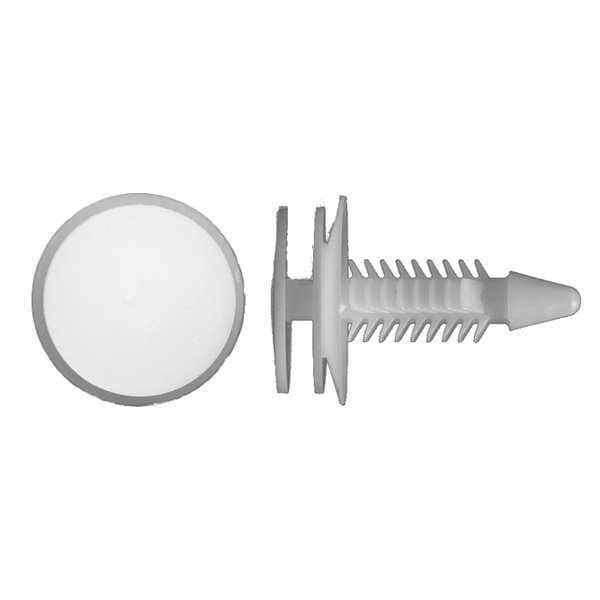Nylon Retainers,White,Dome,24mm L,PK50, System of Measurement Metric, Shank Diameter 6 mm, Overall Length 25 mm, Shank Type Ribbed, Material Nylon, Head Type Dome, Head Height 1 mm, Head Diameter 18 mm, Color White, Maximum Hole Diameter 6 mm, Product Type Push-In Rivet, Manufacturer Location Made in USA*, Body Length 24 mm, Material Grade/Class Ungraded, Package Quantity 50