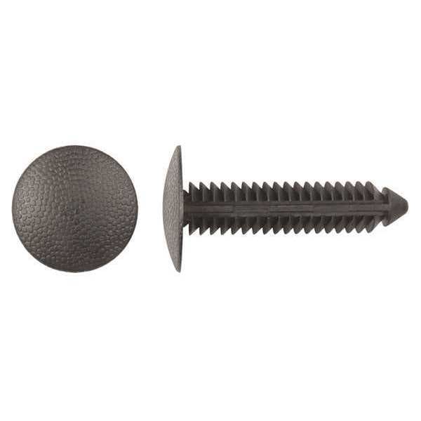 Push-In Rivet, Dome Head, 6 mm Dia., 33 mm L, Nylon Body, 25 PK