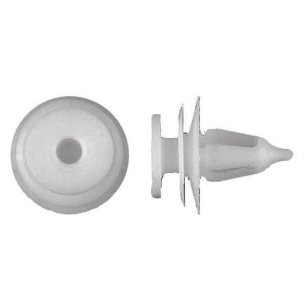 Nylon Retainers,White,Dome,15mm L,PK50, System of Measurement Metric, Shank Diameter 7 mm, Overall Length 16 mm, Shank Type Solid, Material Nylon, Head Type Dome, Head Height 1 mm, Head Diameter 13 mm, Color White, Maximum Hole Diameter 7 mm, Product Type Push-In Rivet, Manufacturer Location Globally Sourced, Body Length 15 mm, Material Grade/Class Ungraded, Package Quantity 50