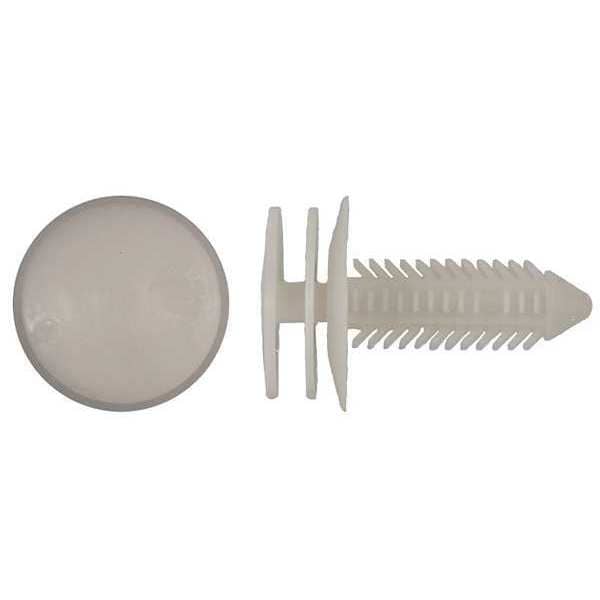 Nylon Retainers,White,Dome,24mm L,PK25, System of Measurement Metric, Shank Diameter 7 mm, Overall Length 26 mm, Shank Type Ribbed, Material Nylon, Head Type Dome, Head Height 2 mm, Head Diameter 18 mm, Color White, Maximum Hole Diameter 7 mm, Product Type Push-In Rivet, Manufacturer Location Globally Sourced, Body Length 24 mm, Material Grade/Class Ungraded, Package Quantity 25