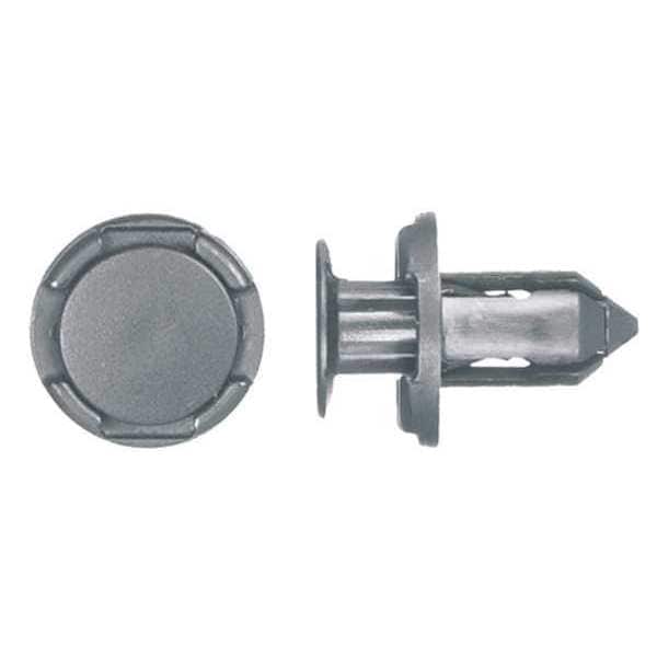 Nylon Retainers,Black,Dome,13mm L,PK15, System of Measurement Metric, Shank Diameter 9 mm, Overall Length 14 mm, Material Nylon, Head Type Dome, Head Height 1 mm, Head Diameter 13 mm, Color Black, Maximum Hole Diameter 9 mm, Product Type Push-In Rivet, Manufacturer Location Globally Sourced, Body Length 13 mm, Material Grade/Class Ungraded, Package Quantity 15