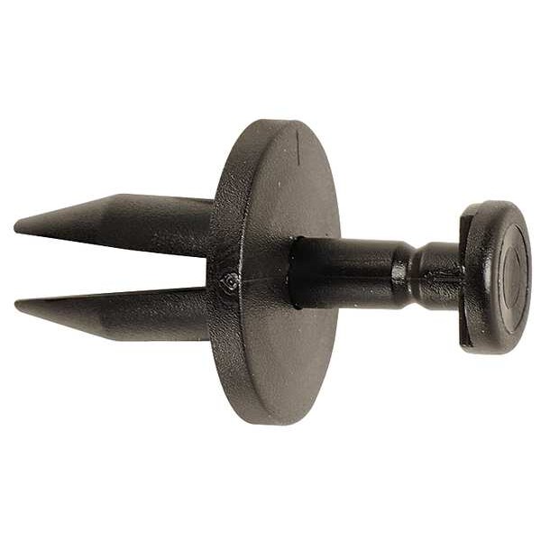 Push Retainer,Black,Flat,14mm L,PK50, System of Measurement Inch, Material Plastic, Head Type Flat, Head Diameter 21/32 in, Color Black, Maximum Hole Diameter 0.375 in, Product Type Push-In Rivet, Manufacturer Location Globally Sourced, Body Length 14 mm, Material Grade/Class Ungraded, Package Quantity 50