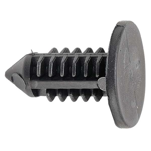 Push-In Rivet,Black,Dome,PK50, System of Measurement Metric, Shank Type Ribbed, Material Nylon, Head Type Dome, Head Diameter 15 mm, Color Black, Maximum Hole Diameter 6.3 mm, Product Type Push-In Rivet, Material Grade/Class Ungraded, Package Quantity 50