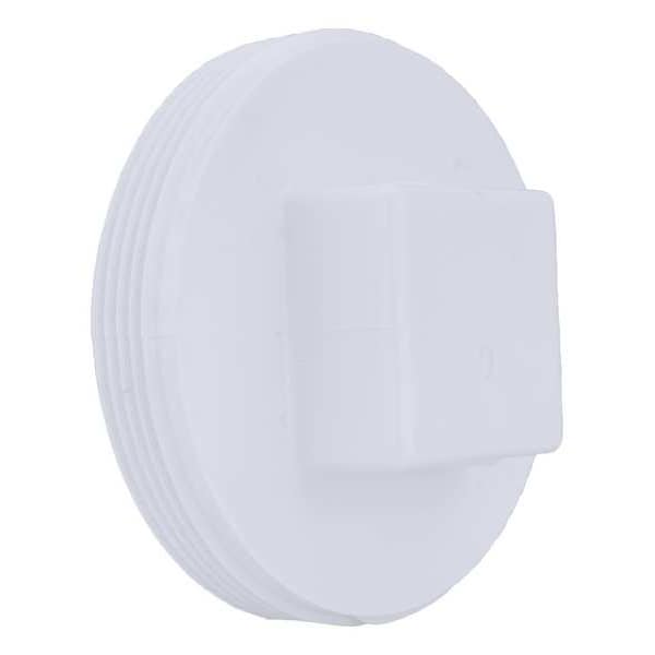 Plug, 4 in Nominal Pipe Size, PVC, Schedule 40, Male NPT, For Pipe Schedule Schedule 40, 4 1/2 in Outside Diameter, 1 7/8 in Overall Length, 0 Degrees to 140 Degrees F, Plug Construction Cored, Plug Drive Style Square, Includes Pre-Applied Thread Sealant Sealant Not Pre-Applied, Includes Seal Seal Not Included, White