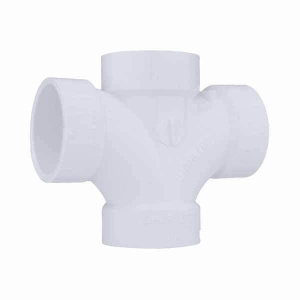 Double Sanitary Tee, Hub Connection, Material of Construction PVC, Schedule 40, Color White, Standards Cell Class 12454, ASTM D-1784, Package Quantity 1