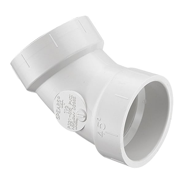 45 Degrees Elbow, PVC, Schedule DWV, For Pipe Schedule Schedule 40, 3 in, Female, Socket, 3 in, Female, Socket, Includes Seal Seal Not Included, Not Applicable Overall Length, Not Rated Maximum Operating Pressure, 73 Degrees to 180 Degrees F