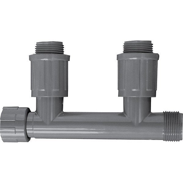 Manifold Tee, 1 In.MPT Connection, Material of Construction PVCMax. Temp. 140 Degrees FColor Gray, Length 7.46 In.