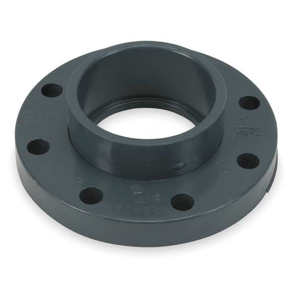 Flange, Lap Joint, 4 in Nominal Pipe Size, Socket, 9 in Flange Outside Diameter, 1 1/16 in Flange Thickness, Schedule 80, Class Class 150, For Pipe Schedule Schedule 80, PVC, 150 psi Maximum Operating Pressure, 140 Degrees F, Number of Bolt Holes 8, 7 1/2 in Bolt Circle Diameter, 3/4 in Bolt Hole Diameter, 2 3/4 in Overall Length, Gray