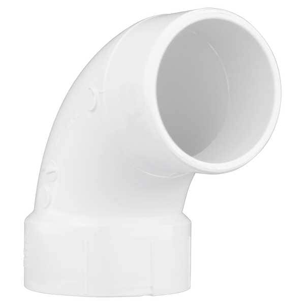 90 Degrees Street Elbow, PVC, Schedule 40, For Pipe Schedule Schedule 40, 3 in, Male, Spigot, 3 15/16 in, 3 in, Female, Socket, 3 15/16 in, Includes Seal Seal Not Included, For Pipe Outside Diameter 3 1/2 in, 7 5/8 in Overall Length, Gravity Flow Maximum Operating Pressure, -20 Degrees to 140 Degrees F