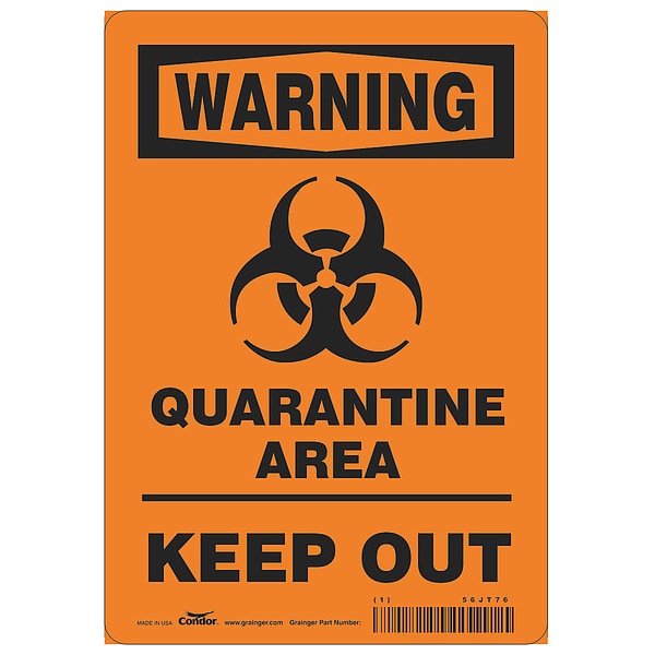 Quarantine Area Sign, Sign Subject Matter Coronavirus Prevention, Height 10 in, Width 7 in, Sign Material Polyester, Sign Mounting Style Adhesive Surface, Header Warning, Legend Quarantine Area Keep Out, Printed Language English