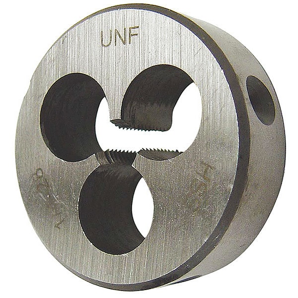 Round Threading Die, Round, Thread Size #12-24, UNC, Solid, Outside Dia. 1 in, Die Material Carbon Steel, Thread Direction Right Hand, Die Thickness 3/8 in, Finish - Machining Bright (Uncoated)