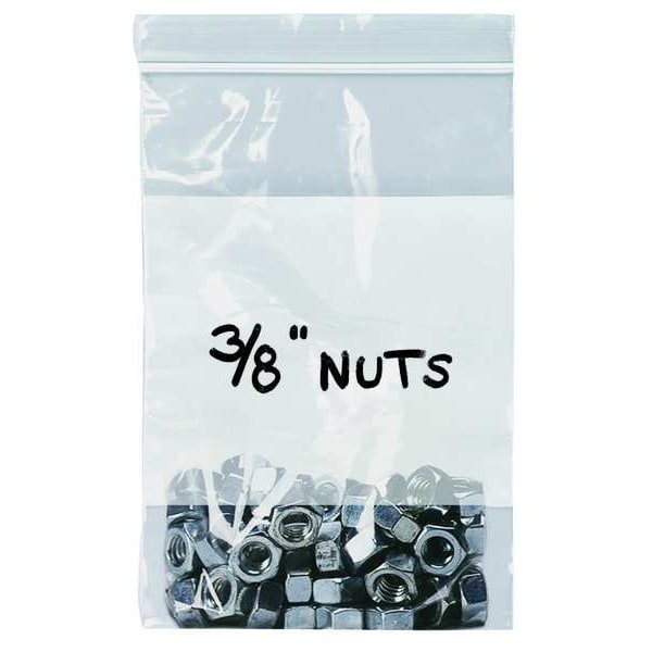 Reclosable Bag, Zip Seal, 5 in L, 3 in W, 2 mil Thick, Low Density Polyethylene (LDPE), Clear