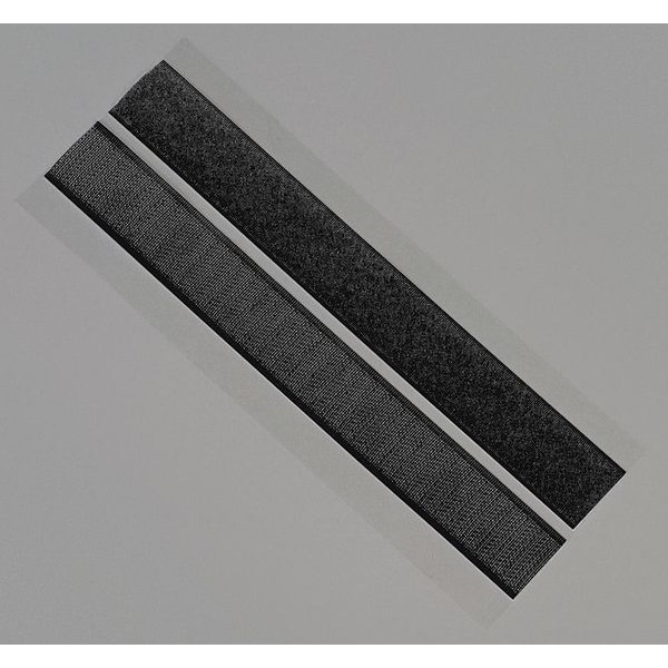 Hook-and-Loop Fastener, Hook-and-Loop, Hook and Loop Shape Strip, Length 6 in, Width 1 in, Color Black, Flame Retardant No, Backing Material Woven Nylon, Shear Strength 20.9 lbf/sq in, Adhesive Type Rubber, Characteristics Pressure Sensitive, Includes 75 Sets (75 Hook Pieces and 75 Loop Pieces), Package Quantity 75