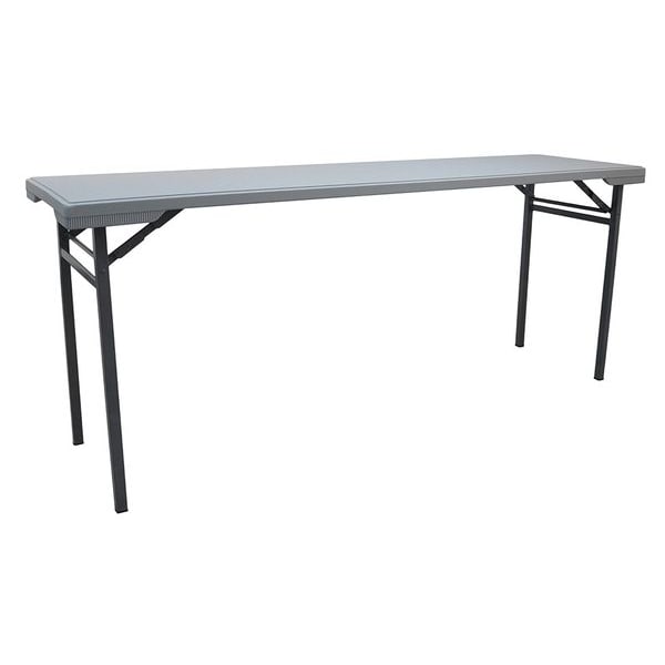Folding Table, Surface Material Blow Molded Polyethylene, Rectangle, Width 20 in, Length 71 in, Height 29 in, Tabletop Color Family Gray, Tabletop Color Gray, Frame Color Gray, Assembled/Unassembled Assembled, Frame Material Steel, Edge Color Gray, Edge Type Bullnose, Leg Type Straight, Table Material Blow Molded Polyethylene, Top Thickness 2 in, Load Rating 450 lb, Standards Not Applicable, Includes Not Applicable