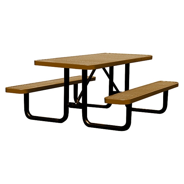 Rectangle Picnic Table, Brown, Expanded Metal, 6 Seats, 72 in L, 29 5/8 in H Overall Diamond Mesh