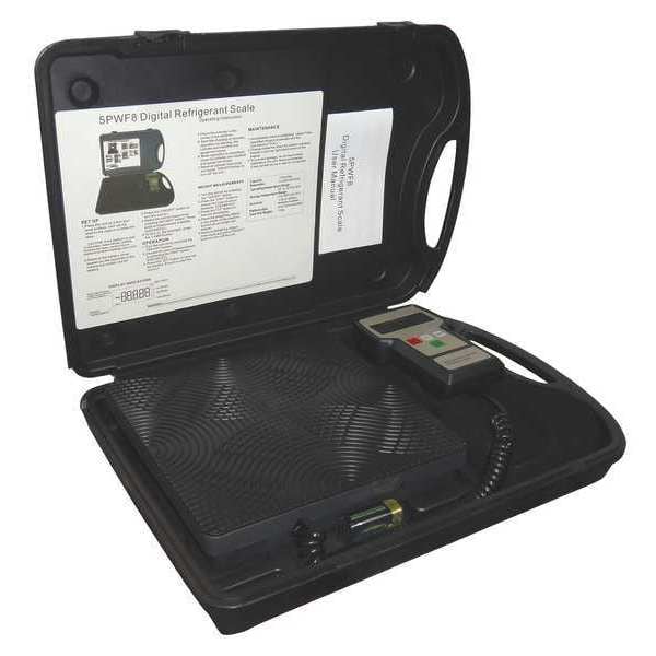 Charging Scale, Electronic, Platform Size (In.) 9 x 9, +/- 2 g Accuracy, Max. Capacity (Lb.) 110 lb, Resolution 2 g, 0.005 lb, 0.1 oz, kg, lb, oz, Display Digital, For Use With Weighing The Refrigerant Container, Charging or Recovering, Includes Carrying Case