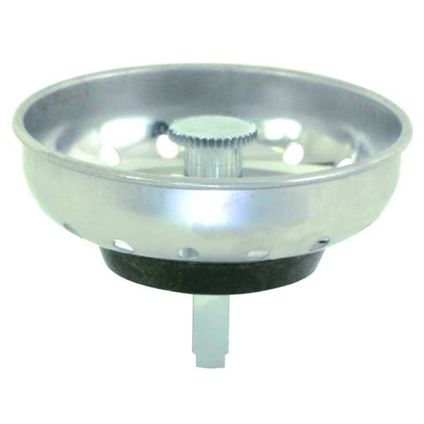 Strainer, Product Type Strainer, Overall Diameter 3 1/2 in, Material Stainless Steel, Finish Chrome, Installation Type Drop-In, Color Silver, Grate Surface Type Round Holes, Shape Round, Includes Stick Post, For Use with Drain Type Sink Drain, Drain Style Round