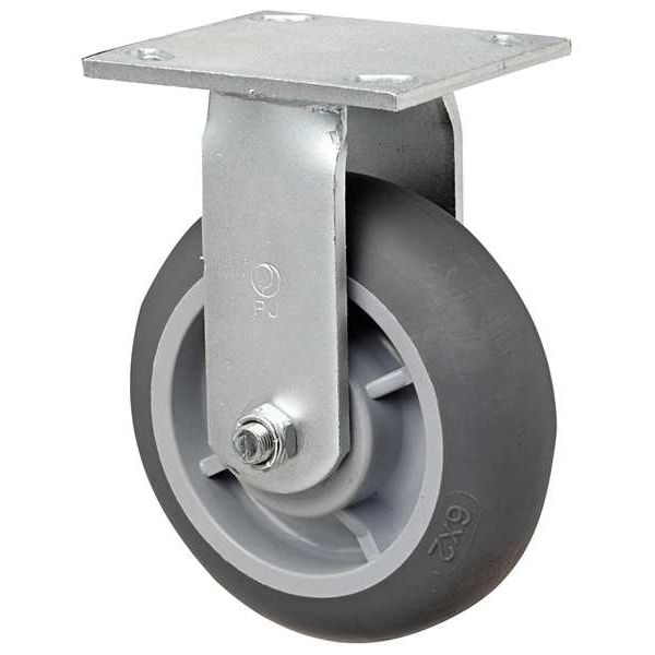 Rigid, Plate Caster, Load Rating 450 lb, Swivel Lock Type No Lock Included, Wheel Dia. 6 in, Wheel Width 2 in, Wheel/Tread Material Rubber, Wheel Core Material Polyolefin, Non-Marking Yes, Number of Wheels 1, Caster Brake Type No Brake, Tread Shape Standard