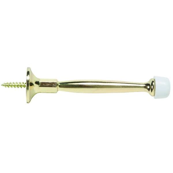 Door Stop, Mounting Type Screw In, Finish Brass, Color Gold, Base Dia. 1 in, Projection 4 in, Mounting Style Screw-In, Material Aluminum, Hardware Included