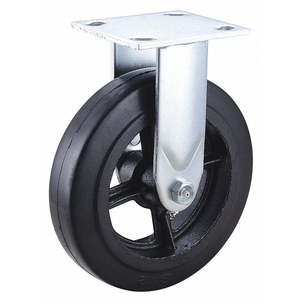 Rigid, Plate Caster, Load Rating 600 lb, Swivel Lock Type No Lock Included, Wheel Dia. 8 in, Wheel Width 2 in, Wheel/Tread Material Rubber, Wheel Core Material Iron, Non-Marking No, Number of Wheels 1, Caster Brake Type No Brake, Tread Shape Standard