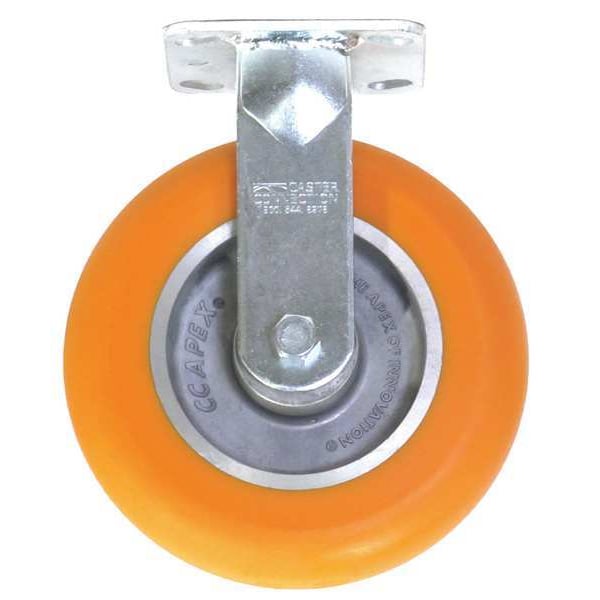 Rigid, Plate Caster, Load Rating 1200 lb, Swivel Lock Type No Lock Included, Wheel Dia. 8 in, Wheel Width 2 in, Wheel/Tread Material Polyurethane, Wheel Core Material Aluminum, Non-Marking Yes, Number of Wheels 1, Caster Brake Type No Brake, Tread Shape Donut
