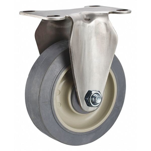 Rigid, Plate Caster, Load Rating 300 lb, Swivel Lock Type No Lock Included, Wheel Dia. 4 in, Wheel Width 1 1/4 in, Wheel/Tread Material Rubber, Wheel Core Material Polyolefin, Non-Marking Yes, Number of Wheels 1, Caster Brake Type No Brake, Tread Shape Standard