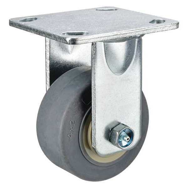 Rigid, Plate Caster, Load Rating 300 lb, Swivel Lock Type No Lock Included, Wheel Dia. 4 in, Wheel Width 2 in, Wheel/Tread Material Rubber, Wheel Core Material Polyolefin, Non-Marking Yes, Number of Wheels 1, Caster Brake Type No Brake, Tread Shape Standard