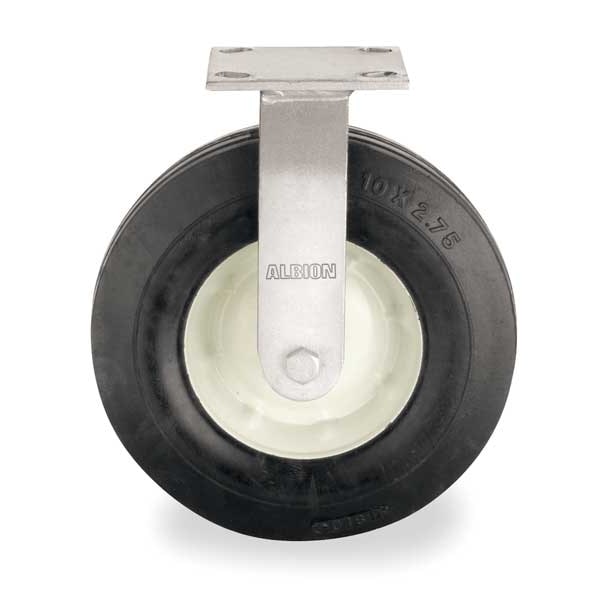 Rigid, Plate Caster, Load Rating 350 lb, Wheel Dia. 10 in, Wheel Width 3 3/4 in, Wheel/Tread Material Rubber, Non-Marking No, Number of Wheels 1, Caster Brake Type No Brake, Tread Shape Sawtooth