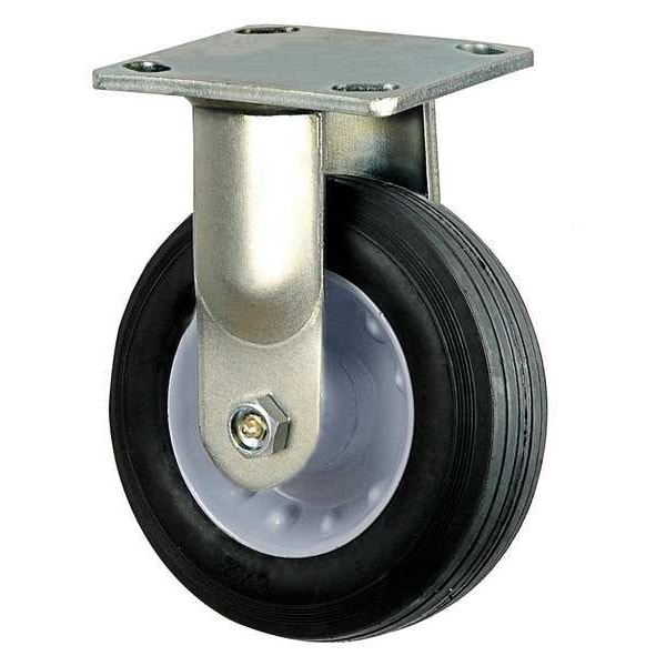 Rigid, Plate Caster, Load Rating 200 lb, Wheel Dia. 6 1/4 in, Wheel Width 1 7/8 in, Wheel/Tread Material Rubber, Non-Marking No, Number of Wheels 1, Caster Brake Type No Brake, Tread Shape Ribbed