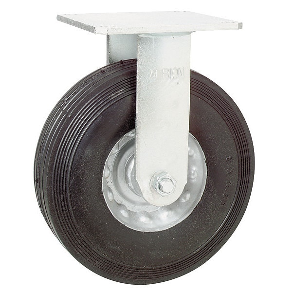 Rigid, Plate Caster, Load Rating 350 lb, Wheel Dia. 8 in, Wheel Width 2 1/2 in, Wheel/Tread Material Rubber, Non-Marking No, Number of Wheels 1, Caster Brake Type No Brake, Tread Shape Ribbed