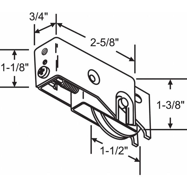 Roller Assembly, Roller, Steel, Gray, Plated Finish, Length (In.) 3-23/64, Height (In.) 57/64, Width (In.) 3/4, Outside Dia. 1-1/4, Max. Wheel Dia. (In.) 1-1/4, Roller Width/Dia. (In.) 1-1/4, Door Mounting, Steel Bearings, Steel, Hardware Included, Requires Hardware, For Use With Patio Glass Door