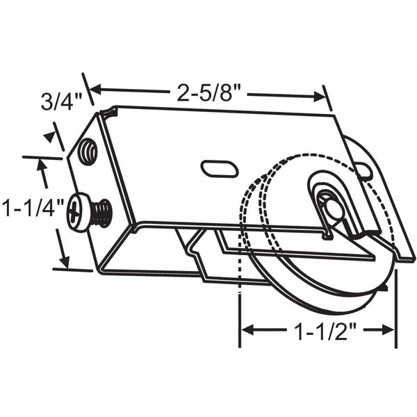 Roller Assembly, Roller, Steel, Gray, Plated Finish, Length (In.) 3-3/8, Height (In.) 3/4, Width (In.) 1--5/8, Outside Dia. 1-1/4, Max. Wheel Dia. (In.) 1-1/4, Roller Width/Dia. (In.) 1-1/4, Door Mounting, Steel Bearings, Steel, Hardware Included, Requires Hardware, For Use With Patio Glass Door