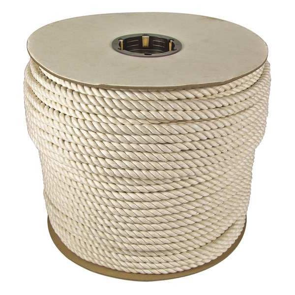 General Purpose Utility Rope, Rope Type Dynamic, Breaking Strength 1,935 lbf, Working Load Limit 430 lb, Rope Construction Twisted, Diameter 1/2 in, Overall Length 300 ft, Core Material Cotton, Cover Material Not Applicable, Elongation @ 10 Percent Minimum Breaking Strength Not Applicable, Product Type General Purpose Utility Rope, Lifting Capability Not for Lifting, Rope Format Spool, Rope Strand Count 3, Core Type Hollow Core, Core Strand Count 0, End Type Plain