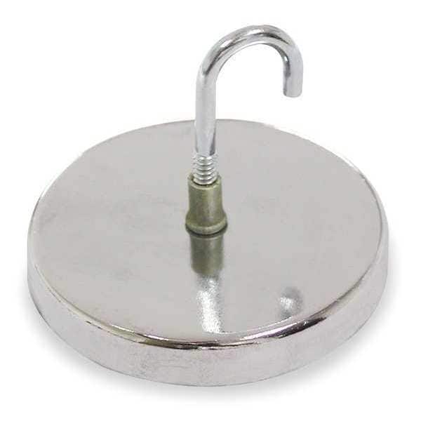 Single Point Hook, Fastening Method Magnetic, Points per Hook 1, Number of Hooks 1, Basic Hook Material Ceramic, Hook Finish Chrome, Working Load Limit 20 lb, Hook Height 1 3/8 in, Projection 1 1/4 in, Silver, Hook Eye Inside H 1/2 in, Hook Eye Inside W 1/2 in, Base Dia. 2.04 in, Depth 1/4 in, Thread Size Not Applicable, Weight 0.15 lb, Thread Length Not Applicable, Includes Hook, Mounting Magnetic