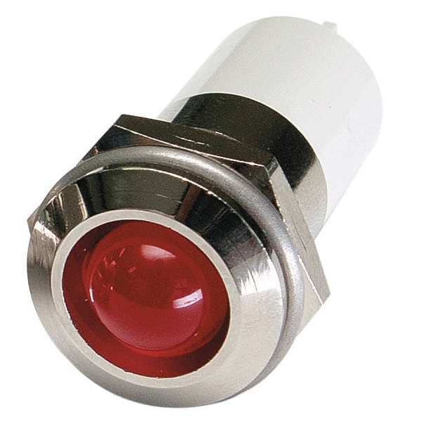 Raised Panel Light, LED, Brass Plated Chrome, LED, Plastic (ABS), Red, Voltage 24V DC, Size 16mm Mounting dia, Electrical Connection 0.11 Male Quick Disconnect, Shape Round, Current Drawn 20 mA, Average Life 100,000 hr, IP Rating IP40, Panel Thickness Up to 0.160 in, Standards cRUus, RoHS