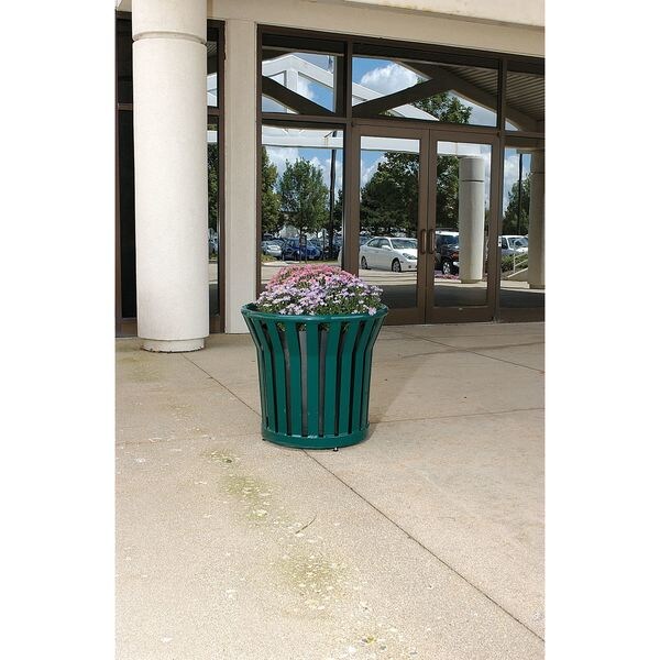 Planter, Color Green, Shape Round, Material Steel, Overall Height 25 1/2 in, Overall Diameter 25 1/2 in, Product Type Planter