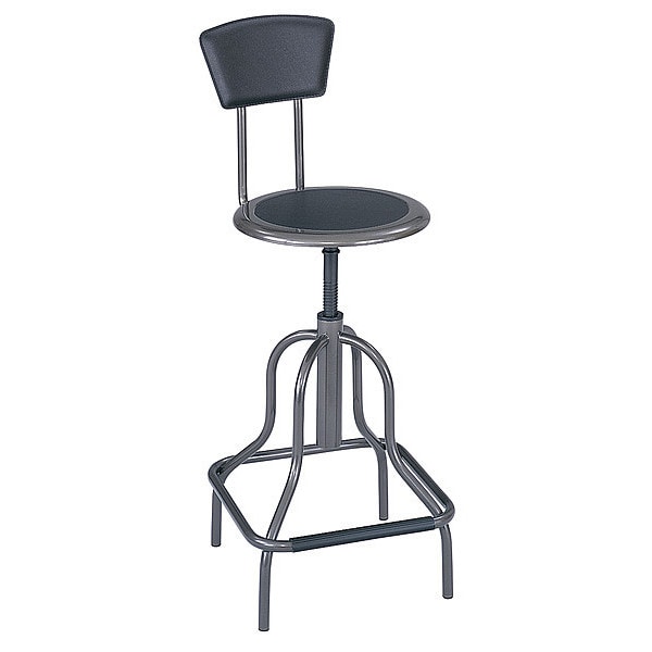 Round Stool, Base Design Rectangular Frame, Mobility Stationary, Backrest Yes, Base Color Pewter, Built-In Tool Tray No, Includes Footring No, Maximum Seat Height 22 in, Minimum Seat Height 27 in, Overall Height 41 in, Seat Adjustment Type Screw Post, Seat Diameter 14 in, Seat Shape Round, Seat Width Not Applicable, Assembled Assembled, Load Capacity 250 lb, Number of Legs 4