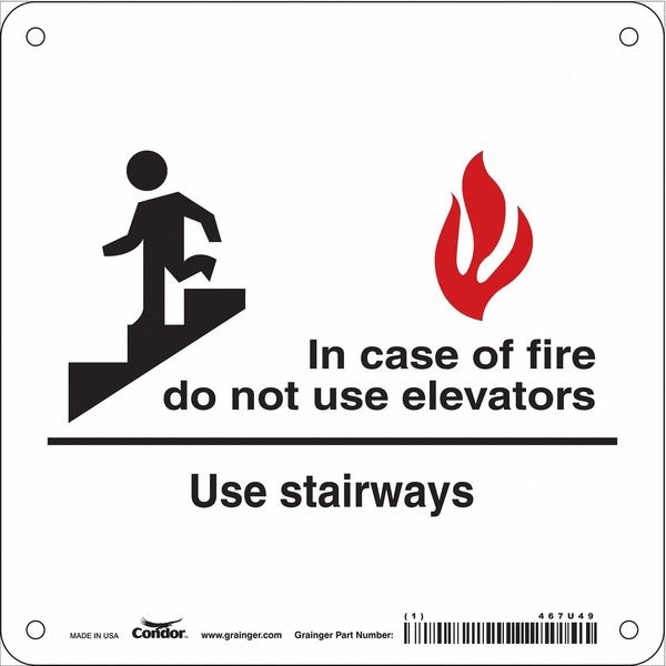 Safety Sign Emergency Exit, Square, Number of Printed Sides 1, English, Sign Format Other Format, Sign Legend In Case Of Fire Do Not Use Elevators Use Stairways, Sign Legend Background Color White, Sign Legend Style Symbol and Text