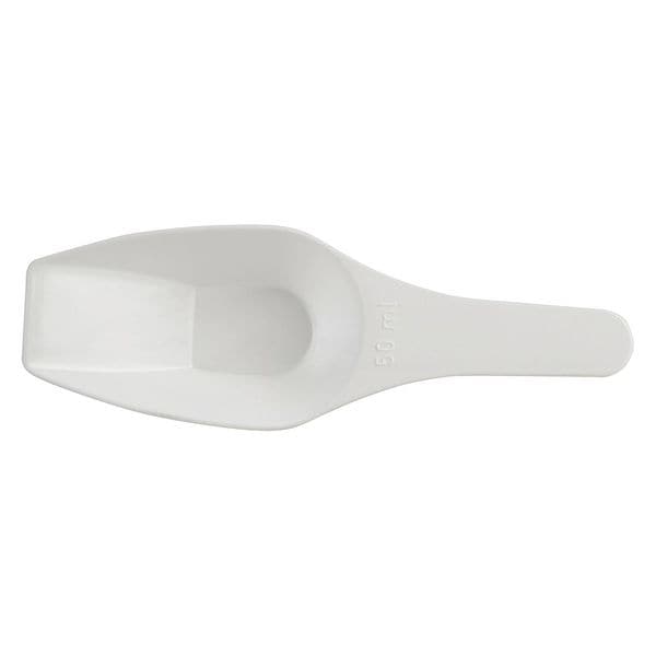 Scoop, Product Type Scoop, Material Polypropylene, Material Grade Not Applicable, Capacity - Imperial 1 3/4 fl oz, Color White, Sterile/Non-Sterile Non-Sterile, Autoclavable Yes, Standards FDA Grade Material, Overall Length - Metric 55.4 mm, Capacity - Metric 50 mL, Features Chemical Resistant, Flat Bottomed, Handle Length - Metric 21.08 mm, Coating Uncoated, Overall Width - Metric 163 mm, Overall Height - Metric 26 mm, Bowl Length - Metric 34.32 mm, Package Quantity 12