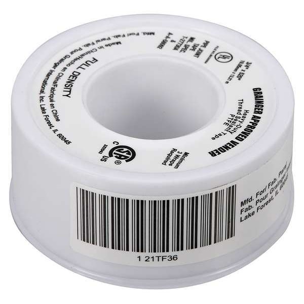 Thread Sealant Tape, Specific Sealing Application General Purpose Thread Sealing, Overall Width 3/4 in, Overall Length 43 ft, Minimum Operating Temperature -400 Degrees F, Maximum Operating Temperature 550 Degrees F, Maximum Operating Pressure for Liquids 10,000 psi, Maximum Operating Pressure for Gases 2,250 psi, Maximum Linear Density 1.5 g/cc, Minimum Linear Density 1.2 g/cc, Color White, Tape Type Pipe Thread Sealant Tape, For Maximum Thread Diameter 3/4 in, For Material Type Brass, Steel