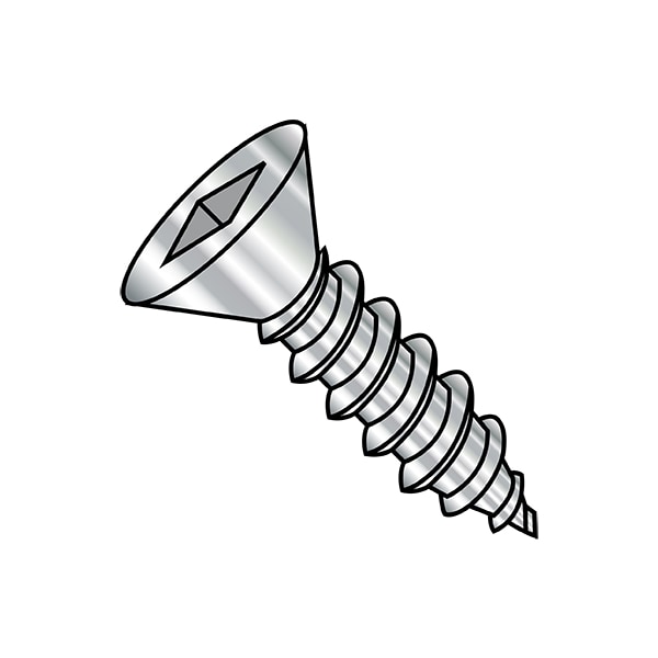 Self-Drilling Screw, #10-12 x 1 in, Plain 18-8 Stainless Steel Flat Head Square Drive, 2000 PK