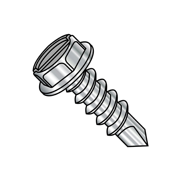 Self-Drilling Screw, #10-16 x 3/4 in, Plain Stainless Steel Flange Hex Head External Hex Drive