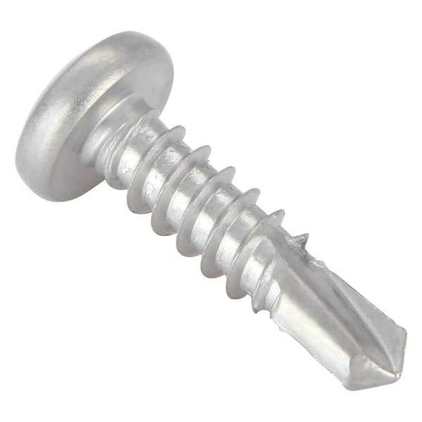 Self-Drilling Screw, #10 x 3/4 in, Plain 410 Stainless Steel Pan Head Phillips Drive, 100 PK