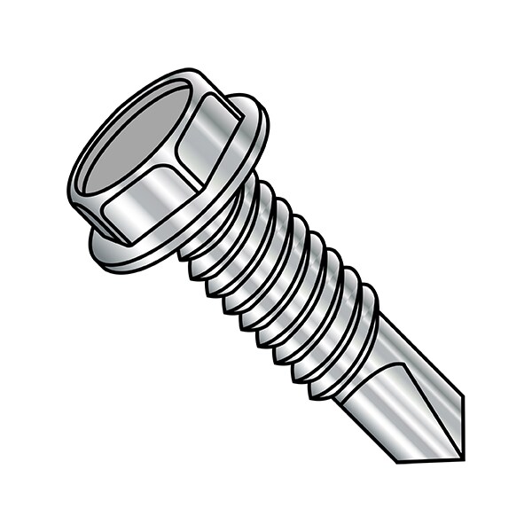 Self-Drilling Screw, #12-24 x 2 in, Plain Stainless Steel Flange Hex Head External Hex Drive